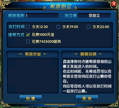 2、帮派创建