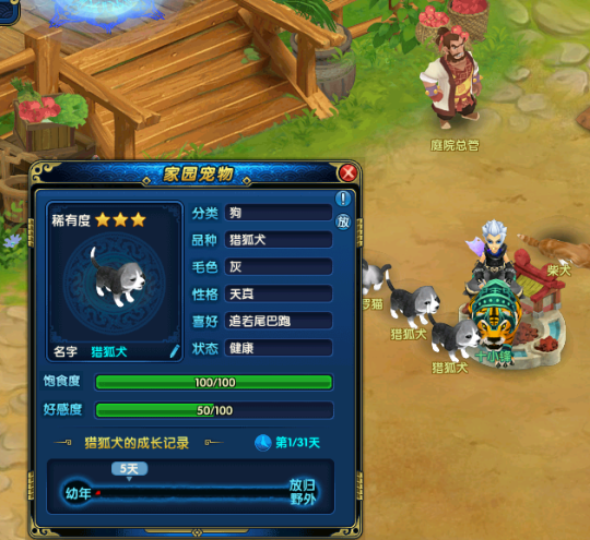 多变的特色宠物不仅在外观上让人心旷神怡,还具有强大的功能哦!玩家通过喂养宠物,经过一定自然天数的成长后,宠物方可成年,宠物成年之后便可拥有诸多的宠物福利。家园种植道具,奇珍异兽要诀,忘生石碎片,海螺笛碎片等诸多珍惜道具玩家都可点击宠物赢取噢!多重福利,宠爱一生,爱心的呵护,必定会有惊喜!