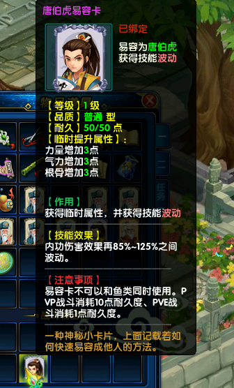 (扫地僧、唐伯虎、王阳明3张易容卡可以通过开启玄机易容卡包获得,玄机易容卡包在击杀金帐侍卫后有几率获得(掉落概率:凶残>疯狂>普通))