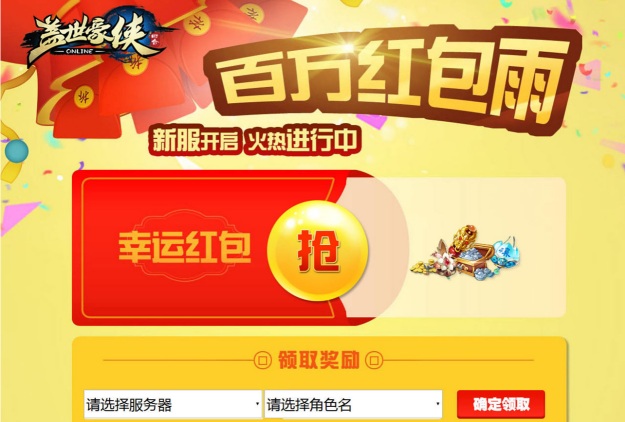 你来晚了,红包被抢光啦”的字眼不再存在于你深深的脑海里,《盖世豪侠》百万红包雨活动也在火热进行中,随时让你走上发家致富的道路!小伙伴们赶紧来抢枪抢~~百万红包雨迎新服火热进行中