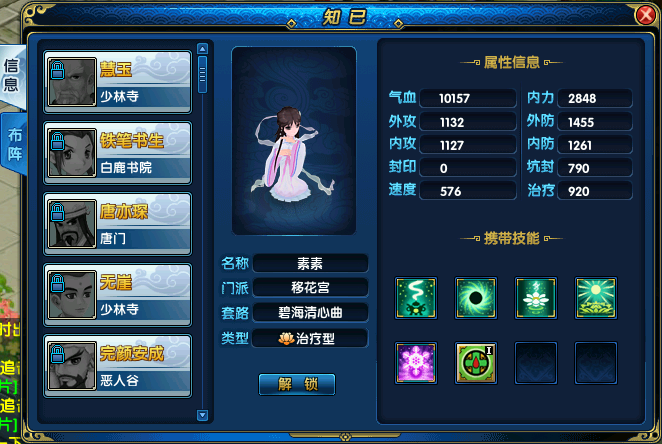 本次知己系统进行了大升级,在这偌大的江湖,你可以招募更多的知己,提升自己的实力。这一次将知己的AI进行了重做,每个知己都有自己的AI,更加智能。 例如知己素素,当己方满血时候会释放血溅寒梅技能攻击敌人,当己方有人死亡时,素素会判断全员的血量是否处于安全状态,如果队员血量过低,则素素会优先使用治疗技能,而不是复活技能。