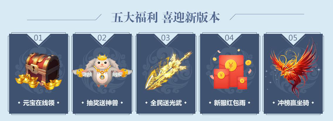 开服献礼:献礼开服,大奖等你拿。宋王精心准备了礼盒,打开就有机会获得武神手镯、精致的龙凤典密要、神兽月狐召唤令等稀有道具。