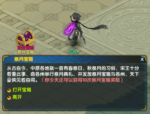 从古自今,中原各地就一直有春祭日,秋祭月的习俗,宋王十分看重此事,命各州举行祭月典礼,并发放祭月宝箱与各州,天下豪侠见着自得。