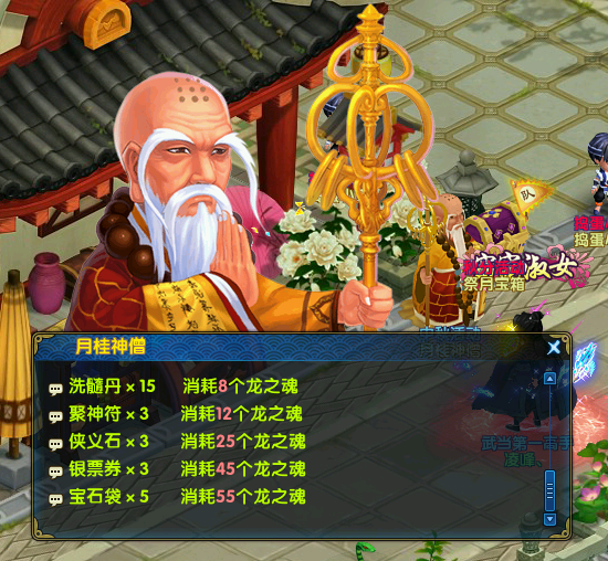 完成上面各种获得都有机会获得龙之魂,可用此道具在月桂神僧处兑换洗髓丹等各种奖励。